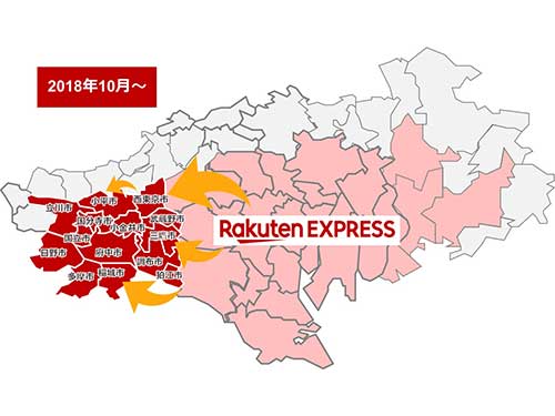 楽天は10月3日、自社配送サービス「「Rakuten—Express(ラクテンエクスプレス)」の配送エリアに東京都の14市を追加したと発表した。すでに都内23区は配送対象としており、今回のエリア拡張で都内のほぼ全域に配送できる体制を整えた。