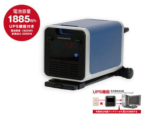 同商品は、キャリー付きで手軽に移動できる蓄電池だ。容量は1.885キロワット。他に電源がない環境でも電気が使用できるため、災害で住宅から避難せざるを得ないときなどに活躍する。フル充電時には、携帯やスマートフォン約200台の充電が可能だという。