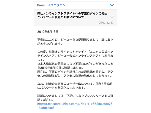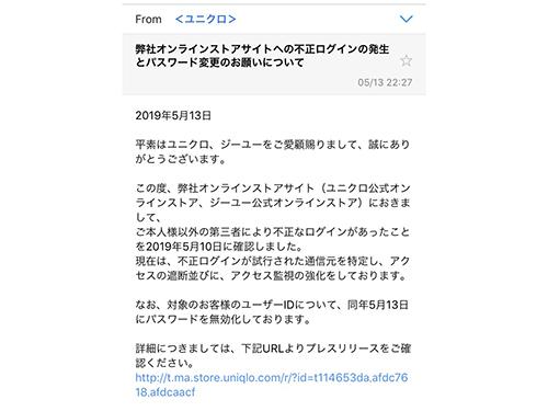ファーストリテイリングは5月13日、「ユニクロ」「ジーユー」のECサイトにおいて46万1091件のアカウントが不正ログインされたと公表した。ユーザーの氏名、住所、電話番号、メールアドレス、生年月日、クレジットカード情報の一部などが閲覧された可能性があるという。