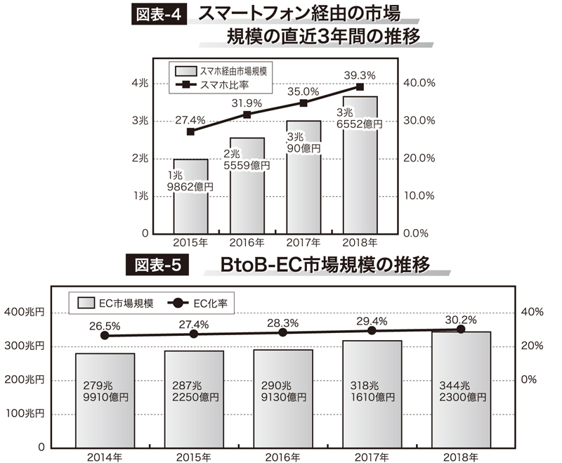 企業向け(BtoB)EC市場規模は同8.1%増の344兆円2300億円に拡大している。EC化率は同0.8ポイント増の30.2%だった。