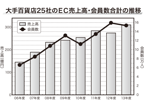 経済産業省が発表した13年のBtoC流通市場全体のEC化率は3・67%だったことから、百貨店のECへの取り組みは出遅れているといえそうだ。