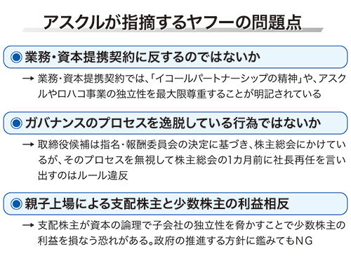 他にもアスクルのガバナンスシステムを無視した手続きの不当性なども記している。