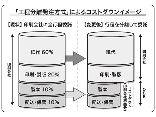 通販会社がカタログを発行する際に二つのパターンがあるといわれる。通販会社が印刷と製本、封入を分けて発注する「分離発注」と、印刷会社が印刷したのち、製本、封入会社を通販会社が指名する「指名発注」だ。OBBでは現在、後者の指名発注が多いという。