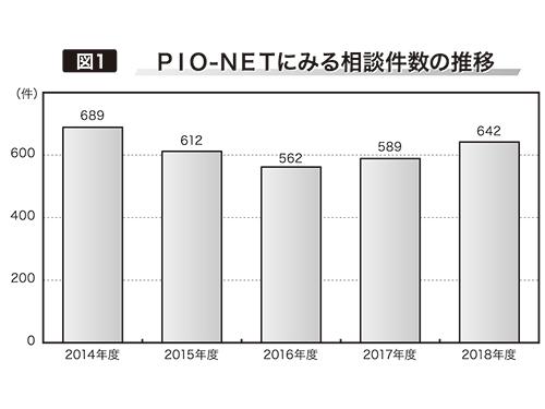 18年4月から受け付けて、19年7月31日までにPIO―NET(パイオネット)に登録された「断っても強引に契約させる手口」に関する相談642件の内、訪問販売は212件(33.4%)、マルチ商法が150件(23.7%)と全体の過半数を占めている。この手口による、18年度の訪問販売での平均被害額は前年度より19万円増の約100万円で、マルチ商法は6万円減の約54万円だという。年代別では、20代の相談件数が371件(59%)と最も大きな割合を占めた。商品・役務別で見ると、投資などの情報商材の「他のデジタルコンテンツ」についての相談が前年度より49件多い60件となり、相談件数増加につながった。