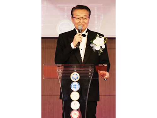 表彰式では、総勢120人以上を表彰。ピュア・クリスタルで上位タイトルのマックス・クリスタルトレーナーに昇格した米澤則次さんがスピーチした。