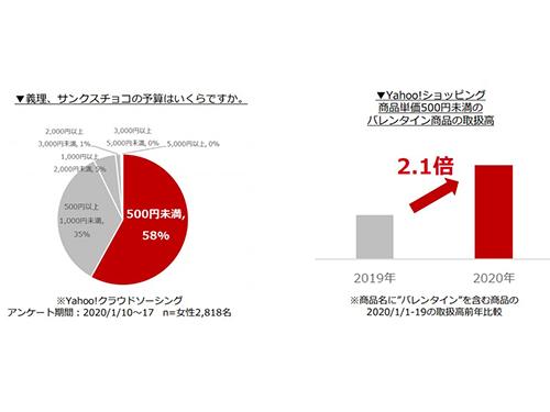 20年のバレンタインデー企画で、百貨店のEC事業者は店頭からネットに購入がシフトしている動きを感じているようだ。阪急百貨店では、予約受付開始から5分で限定300個が完売となった商品もあった。高島屋では2月5日現在、前年比2割増のシーズン中の売り上げを見込んでいる。ハースト婦人画報の発表によると、1個当たりの平均価格と購入個数は上昇しており、ギフトEC各社も今年のバレンタインデーは前年を上回る売り上げを見込む。ヤフーは500円未満の「プチギフト」が昨年より約2倍売れていると発表した。20年のバレンタインデーEC市場は好調な結果が予想される。