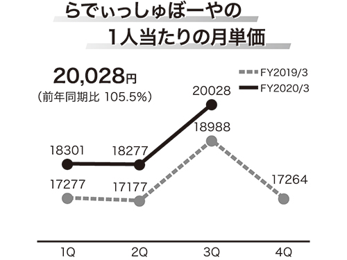 らでぃっしゅぼーやの売上高は同11%減の114億1000万円、営業利益は同17%減の20億円となった。購入頻度や購入単価が低い「赤字会員」を戦略的に減らす取り組みについては終了。サービスレベルの引き上げを優先して、新規会員獲得を抑制し、会員数は同11.4%減の5万8655人だった。会員1人当たりの月間購入金額は同5.5%増の2万28円。