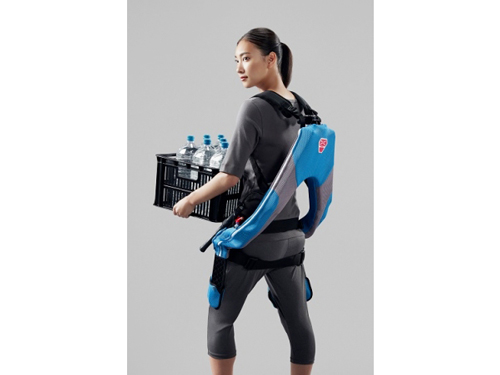 「マッスルスーツEvery」は、空気圧を利用した人工筋肉により、装着した者の動作を補助する作業支援スーツ。運動時の腰への負担を軽減し、日常生活や力仕事をサポートする。