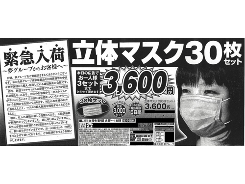 埼玉県/夢グループに措置命令/マスク広告が景表法違反