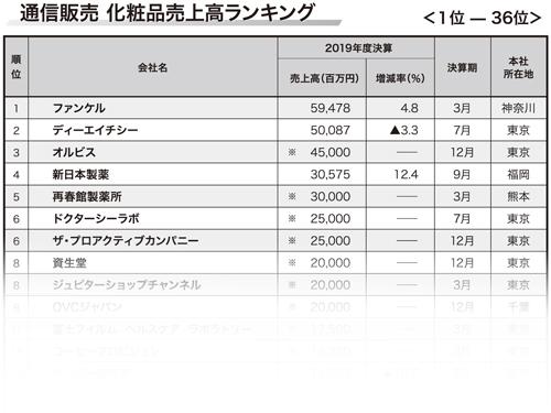 【化粧品通販 2020年版 売上高ランキング】 実質伸び率は4.1%に/通販81社合計は6401億円