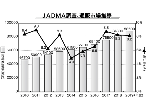 〈日本通信販売協会 調査〉 通販市場8.8兆円/2019年度、前年比8.2%増
