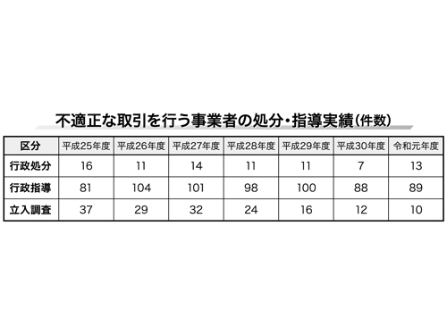 東京都の19年度(令和元年度)における特定商取引法や都消費生活条例に基づく「行政指導」の件数が89件となった。ここ数年は100件を超えるペースが続いていたが、2年連続で2桁となった。9月10日にオンラインで開催した「第26次第1回総会」で明らかにした。 特商法や条例に基づく行政処分の内訳では、 (続きは、「日本流通産業新聞」9月17日号で)