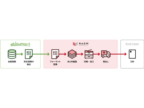 今回の連携により、エビスマートでECサイトを運営する事業者が、手間をかけずにDM発送ができる。電子メールを開封していない顧客へのアプローチや、メール送信後のフォローもできるようにしているという。