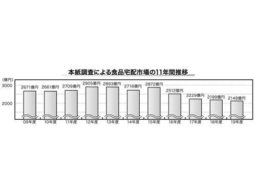 【食品宅配売上高ランキング】 〈食品宅配売上高調査〉18社合計売上高2149億6800万円に/コロナ以降は売上増年末商戦も追い風に/実質伸び率は2.8%減