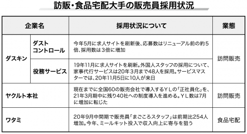 〈訪販・食品宅配大手〉 人材採用が上向き基調に/コロナ禍で応募意欲が活発