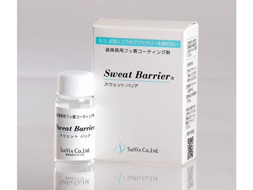 サフィックス(本社長野県、景山斉社長、(電)026―217―1552)は、金属アレルギーの人でも好みのデザインのアクセサリーを、安心して身に着けられるようになるフッ素コーティング剤「スウェットバリア」を販売している。卸供給にも対応している。