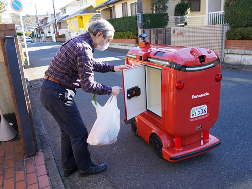 商品を運ぶUGVは、購入者の自宅の前に到着すると自動音声による電話で到着を知らせる。購入者は、自動配送ロボット側面の操作パネルに暗証番号を入力して扉を解錠し、商品を受け取ることができる。