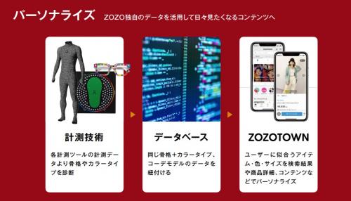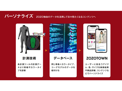 計測技術やこれまで蓄積してきたユーザーの計測データを生かし、「ZOZOTOWN」のパーソナライズ機能を強化する考えだ。顧客のデータを深く理解することで、ファッションの提案力を高め、より多くのユーザーを集めたい考えだ。