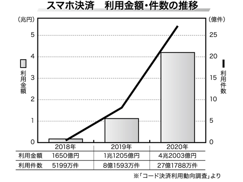 〈拡大するスマホ決済〉 市場規模は4兆円に/自社サイト導入への動き進む(2021年6月3日号)