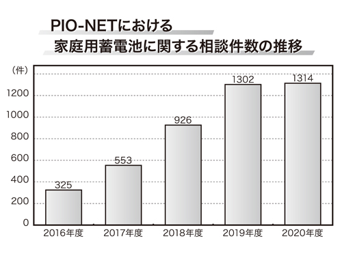 PIO―NETでの16年4月1日以降から21年4月30日までの、5年分の家庭用蓄電池に関する相談の傾向分析も公表している。