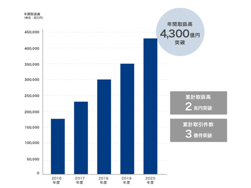 ネットプロテクションズ(本社東京都、柴田紳社長)は6月30日、20年度における「NP後払い」「NP掛け払い」などの後払い決済事業全体の取扱高が4300億円に達したと発表した。国内シェアの4割になるという。