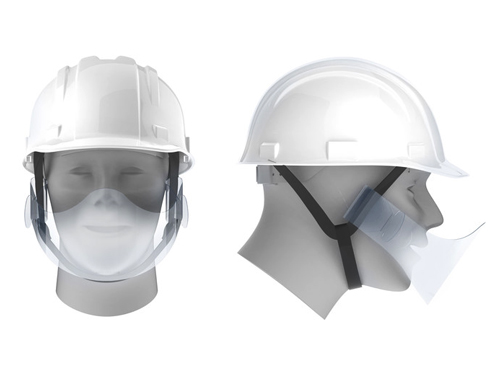 既存のマウスシールドは建設現場の作業員から、息苦しさやマウスシールドに付いた飛沫が取れないなどの声が寄せられていた。課題を解消するため、新モデルのマウスシールドを開発した。