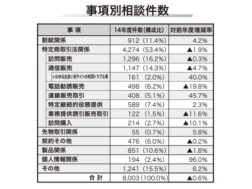 〈経産省の消費者相談〉 14年度は8003件/連鎖が急増、通販と訪販は減少