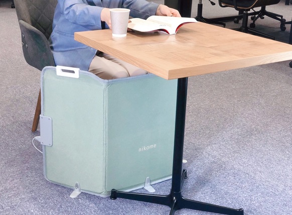 「遠赤外線パネルヒーター」は内側の3面全てのパネルヒーターが発熱する。光や音、風は発生しないため、職場でも周囲を気にせずに使用できる。座席に座って足元を温めるほか、床に座って背中を温めたり、立ち作業のときに足元を温めたり、幅広い用途に対応する。