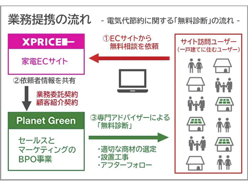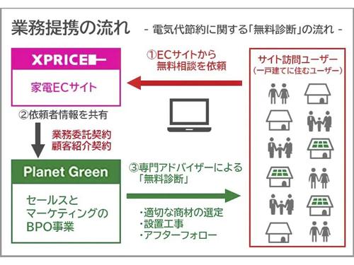 省エネ商材の集客や営業代行支援などを行うプラネットグリーン(本社東京都、永井良社長)はこのほど、家電EC大手のエクスプライス(本社東京都、稲積憲社長)と業務提携した。