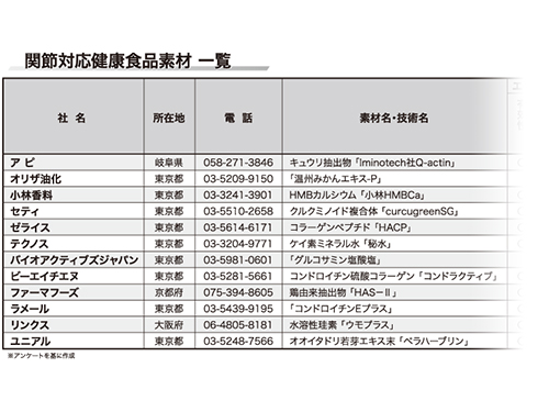 【関節対応健康食品素材】 多様性みせる関節対応サプリ