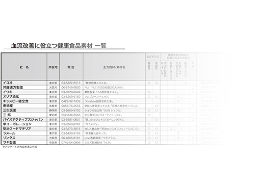 人の体重の約8%を占めるといわれるのが血液。体内をめぐり、体中の細胞に栄養分や酸素を届けたり、不要な二酸化炭素を運び去ったりする、重要な働きをしている。この血液の流れを改善することが、健康にとって大きな意味を持つことは、感覚的にも理解しやすいところだ。そのため、「血液サラサラ」をうたう血流改善商品は、健康食品の人気カテゴリーの一つであり続けてきた。血流改善に役立つ実力派素材を紹介する。
