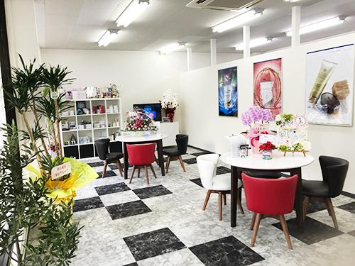 店舗作りで工夫したのは、開放感があって明るいサロンにするため、全面ガラス張りの物件を選んだこと。内装や雰囲気は、清潔感があるサロンを心がけているという。