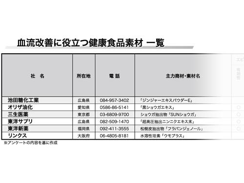 消費者庁の機能性表示食品のデータベースで「血流」をキーワードに検索をかけると、94件(7月19日現在)がヒットする。そのくらい、「血流改善」は、消費者の需要が高い機能性だといえるだろう。体重の13分の1ともいわれる血液が、体の末端まで駆け巡ることによって、人体の機能は維持されている。血流が滞ると、脳梗塞や心筋梗塞など、恐ろしい病気の原因にもなる。「病気になってしまってからでは手遅れかもしれない」と感じる消費者も多い。血液の健康をサポートする健康食品素材を紹介する。