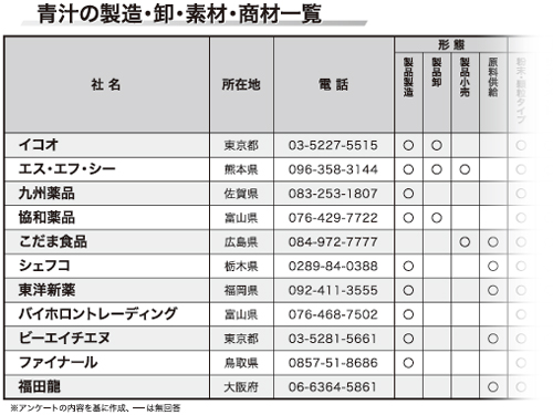 【青汁】 青汁供給各社の最新動向/青汁素材の機能性表示食品化の動きも