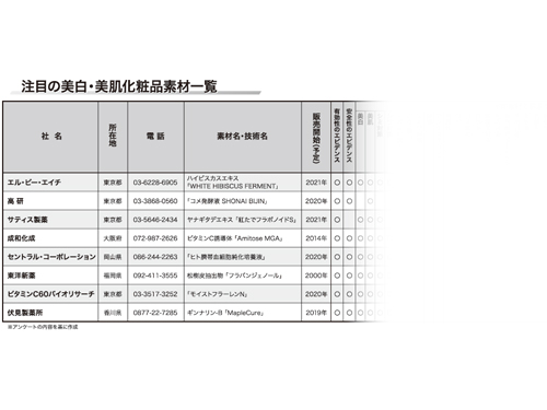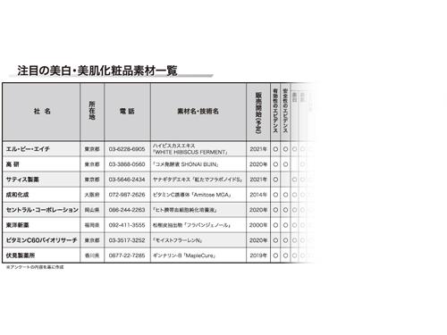 【美白美肌化粧品】 「美白」「美肌」に役立つ素材と開発法を一挙紹介/「サステイナビリティー」などの価値観も前面に(2021年4月29日・5月6日合併号)