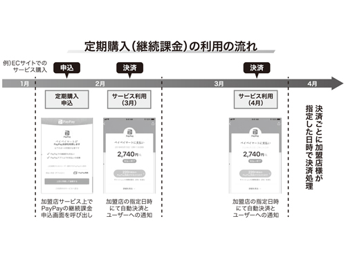 「ペイペイオンライン」をECサイトだけではなく、NBなど会員制ビジネスを展開する業界にも決済インフラとして提供する。会員や顧客が商品をウェブサイトで追加購入する場合や、コンベンションなどのイベント会場やサロン、店舗で商品を購入する場合に、従来の信販やクレジットカード決済に加え、ペイペイの利用ができるようになる。コンベンションやセミナーなどのイベント会場でも利用できる。