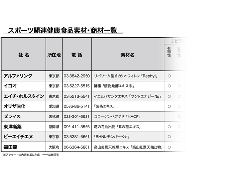 【スポーツサプリメント】 スポーツをサポートできる健康食品素材/「筋力向上」「疲労回復」などサポート素材も多数(2021年10月28日号)