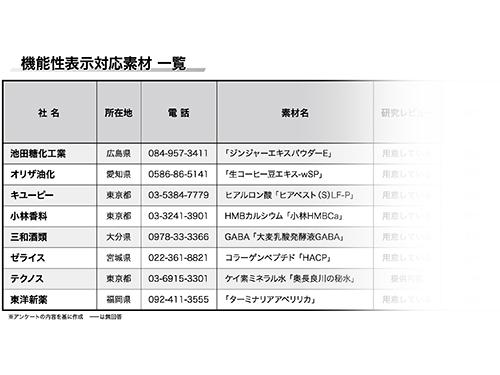 機能性表示食品制度が、健康食品市場において確固たる存在感を発揮している。制度発足から7年が経ち、制度の整備も進んだ。原料会社やOEM会社、受託試験会社、コンサルティング会社などの支援体制も整い、機能性表示食品の開発を、より目指しやすくなっている。一方で、「機能性表示食品である」ということだけでの差別化は、もはや困難になりつつある。いかに、差別化された機能性表示食品を開発するかに、各社は注力するようになっている。機能性表示食品制度に対応した素材や、まもなく届け出が受理される見込みの素材、機能性表示食品開発を強力に支援するOEM企業などを一挙に紹介する。