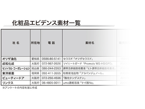 効果や安全性についてのエビデンスを備えた化粧品素材が増えている。ただ、エビデンスの質や量については、素材によってまちまちだ。中には、これまでの化粧品素材にはない、画期的な効果が確認されたものもある。充実したエビデンスを備えた、実力派の化粧品素材を紹介する。