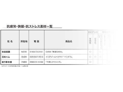 【抗疲労・快眠・抗ストレス素材】 実力派の抗疲労・快眠・抗ストレス素材を一挙紹介(2022年9月29日号)