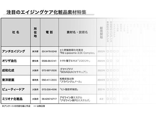 エイジングをケアする化粧品の市場が拡大している。エイジングケアのアプローチの方法も多様化している。ケミカルな成分で鋭い効果を求める方法もあれば、自然派化粧品によるナチュラルなアプローチもある。幹細胞培養液化粧品やエクソソーム配合化粧品なども人気となっている。化粧品素材各社も、差別化ができるエイジングケア新素材の開発を進めている。画期的な新素材の開発に成功した事例もあるようだ。通常ならば廃棄する原材料を使用して、SDGsに対応できるアップサイクル原料を開発するケースも増えている。エイジングケア化粧品素材の”今”を紹介する。