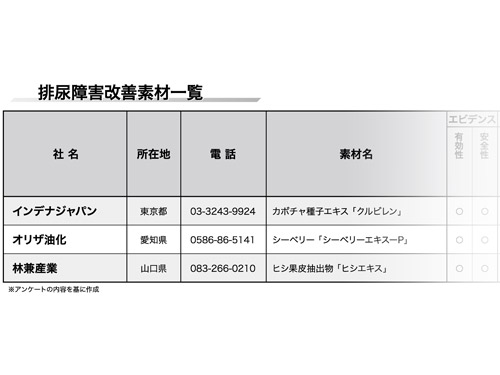 ・【特集 排尿機能改善素材】 インデナジャパン <「サバルセレクト」「カボチャ種子エキス」> 排尿機能障害の改善に役立つ/女性の排尿機能障害への効果も期待