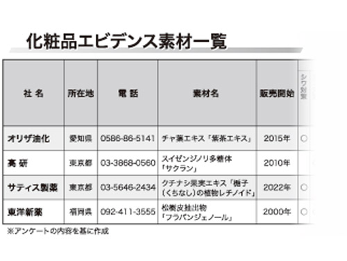 しっかりとしたエビデンスに裏打ちされた化粧品素材が増えている。化粧品素材の評価技術も進化しており、多様なエビデンスの取得が可能になっている。各社は、シワ改善、美白、弾力、保湿、毛穴などさまざまなエビデンスを取得している。メカニズムもさまざま。効果の詳細なメカニズムまで明らかになっている化粧品素材もある。効果がしっかりと試験結果で裏付けられた、実力派の化粧品素材を一挙に紹介する。