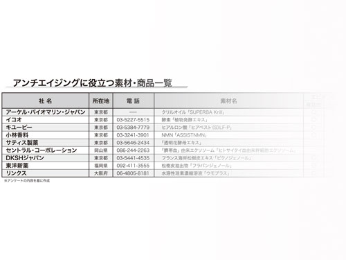 アンチエイジングのニーズはますます高まるばかりだ。健康食品や化粧品でアンチエイジングを図ろうという発想は、もはや〝当たり前〟になっていると言ってよいだろう。アンチエイジングへのアプローチは多様化している。抗酸化や抗糖化は有力なアプローチの一つ。幹細胞やエクソソームに着目するアプローチもある。RBの活性化といった、新しいメカニズムも出てきている。アンチエイジング商品を開発する上では、技術力を備えたOEM会社の協力を得ることも有効だろう。化粧品の場合、容器の側面から差別化することも大切だ。魅力的なアンチエイジング化粧品・健康食品の開発・製造を強力にサポートできる実力派企業を紹介する。