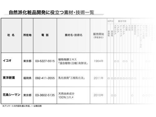 「自然派化粧品」のニーズはますます高まっている。「自然派」「ナチュラル」「植物由来」などをうたう化粧品が多く市場に出回るようになっている。ただ、「自然派」の意味するところは、各社によってまちまちだ。「植物由来原料を豊富に配合」を「自然派」と呼んでいるケースもあれば、「防腐剤など10個の『フリー』を実現」といったことを「自然派」と呼ぶケースもある。「天然由来成分100%」を「自然派」と定義するケースもある。「『自然派』だから肌に良いとは必ずしも言えない」と指摘する識者も少なくない。むしろ、「自然派」だからこそ、安全性や安定性などにはより一層心を配らなければならないようだ。「自然派化粧品」を開発するに当たって、強い味方となるパートナー企業を一挙に紹介する。