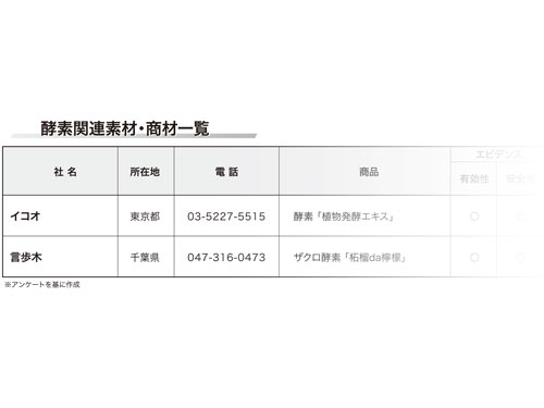 酵素製品は、多くのユーザーから、根強い支持を受け続けている。「毎日当たり前のように飲み続けてきた」「飲まない日が続くと心配になる」という人も少なくない。酵素製品は、日本の発酵文化が生み育ててきた食品といって良いだろう。酵素製品・植物発酵エキスと一口に言っても、原料や製法はさまざまだ。当然のことながら、含有される成分や、期待される効能も異なる。各社は、こだわりの製法で製造した酵素製品の普及に取り組んでいる。実力派の製品を供給できる各社を紹介する。