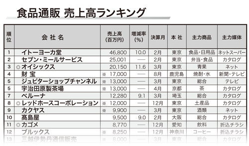 【2015年度 食品通販売上高ランキング】120社合計は3613億円に/実質伸び率は横ばいに