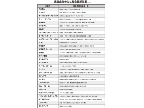 通販企業による社会貢献活動(CSR)が活発化している。かつては主に大手企業が実施していたCSRだが、近年は中小企業も積極的に取り組む動きが広まってきた。CSRに参加することで従業員のモチベーションを高めるだけでなく、企業のブランド価値を高め、結果的に業績向上につながる可能性もある。発展途上国への募金活動、地域社会で行われるボランティア活動への参加、女性が活躍できる職場環境の整備、NGO団体を通じた寄付活動など取り組みは多岐にわたる。CSRに取り組む通販企業を紹介する。