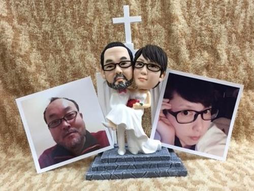 クロスワンは、結婚祝い向けにフィギュアやクリスタルの仕立券を販売している。商品は3Dプリンターやレーザープリンターを使って製作する。顔写真1枚から製作できるのが強みという。