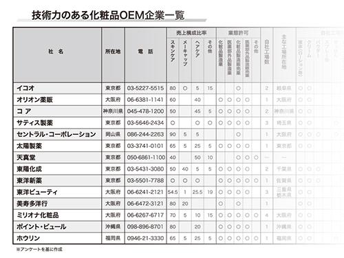 OEM各社は、増産に向けた動きを活発化させている。最大生産能力を大幅に高めるケースも、まれではない状況だ。背景には、インバウンド・アウトバウンドの海外需要の高まりがある。好不況の波がある中で、長年にわたって強さを発揮し続けるOEM会社に求められるのは「技術力」だろう。技術力の種類はさまざま。オンリーワンの特殊な化粧品を開発できるのも技術力ならば、エビデンス取得の支援ができるのも技術力。高品質な化粧品を小ロット・短納期で供給できることも立派な技術力といえるだろう。国内だけでなく海外でも高く評価される、日本の化粧品OEM会社の”技術力”を紹介する。